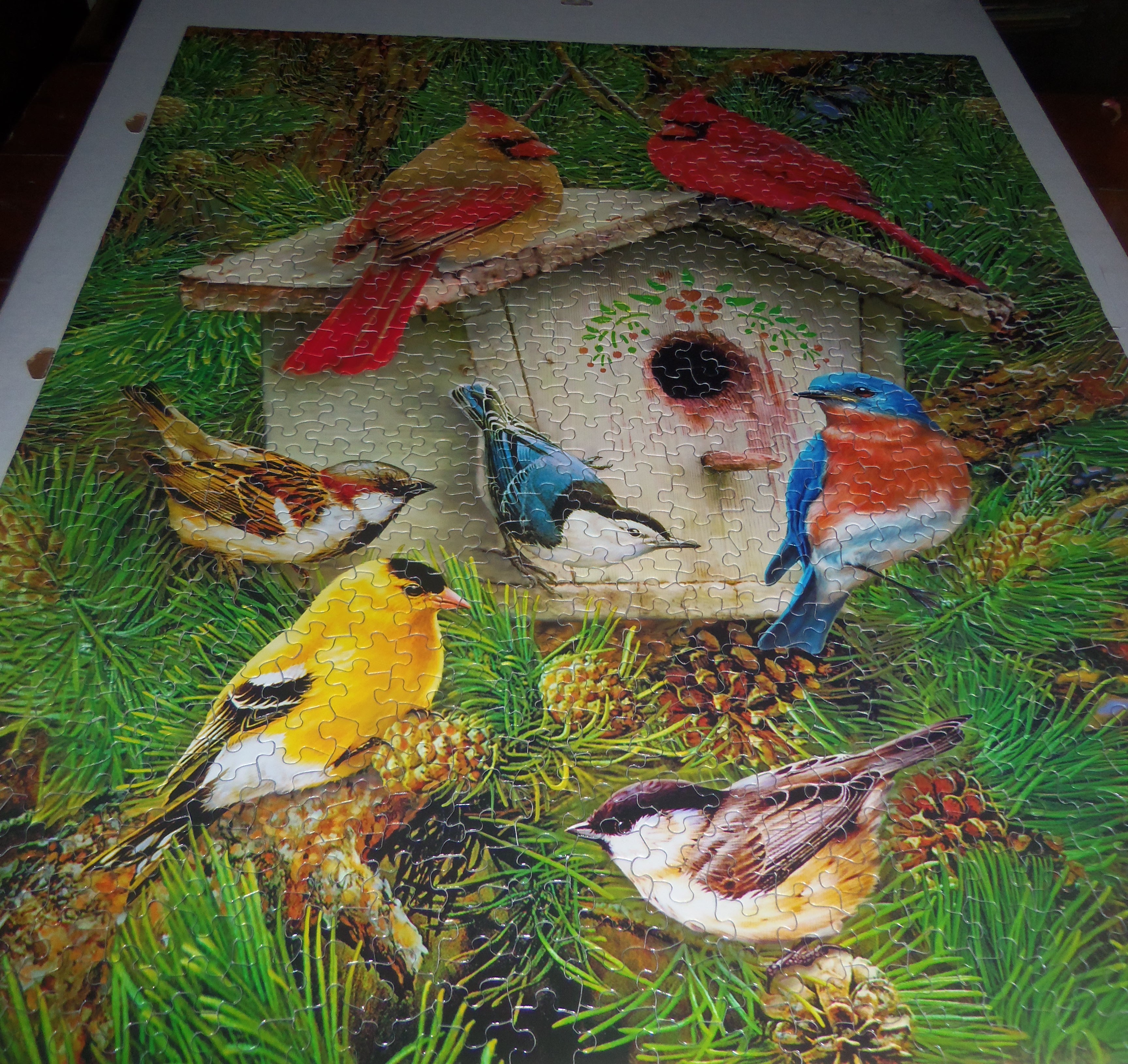 Then we come home, and attack the puzzle.  It has five hundred pieces, and it has been on the dining room table for over a month.