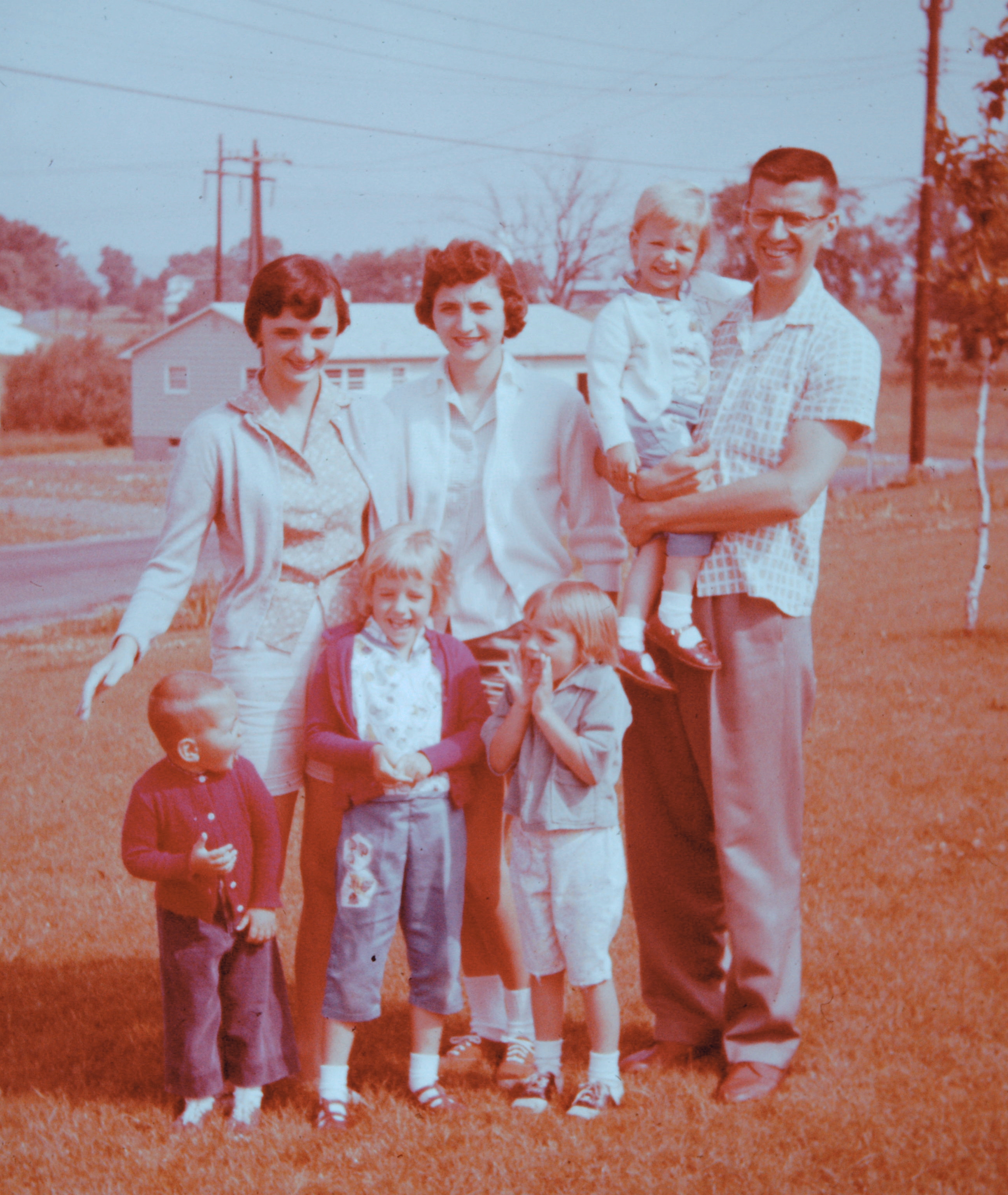Above: My mom, her sister Alice, my Uncle Fred and cousin Suzanne. Below: My brother Scott, my cousin Cindy, me (trying to amplify my voice before social media). Behind the camera: My dad.