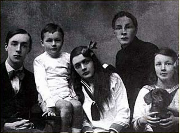 Vladimir Nabokov and his siblings Kirill, Olga, Sergey, and Elena. A photograph taken for their mother in 1918, a year after the Russian Revolution.