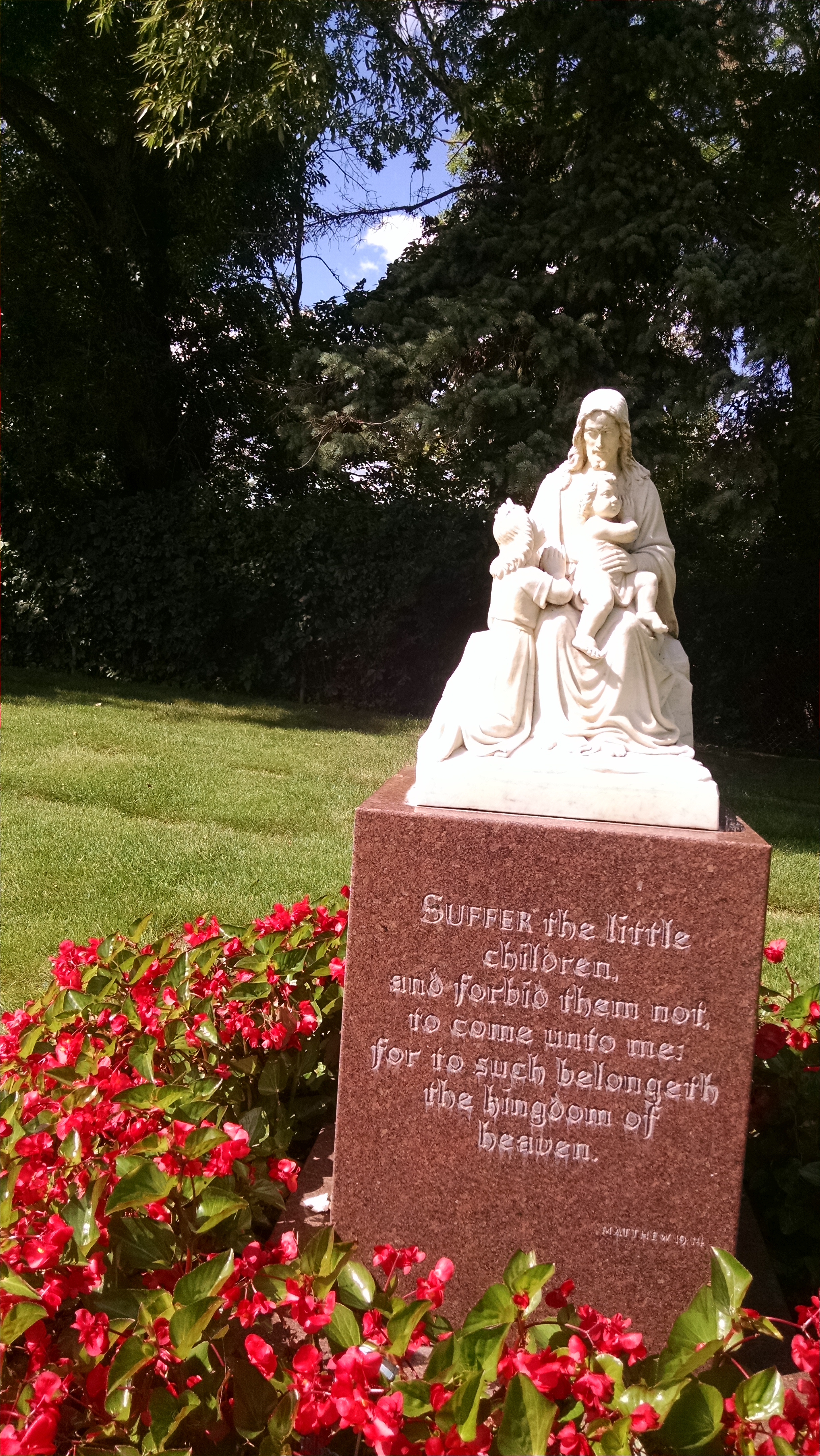 The self-guided walking tour provides a number and a location, but no explanation for Babyland at all. It is row upon row upon row of tiny graves, surrounding a statue of Jesus suffering children to come unto him.