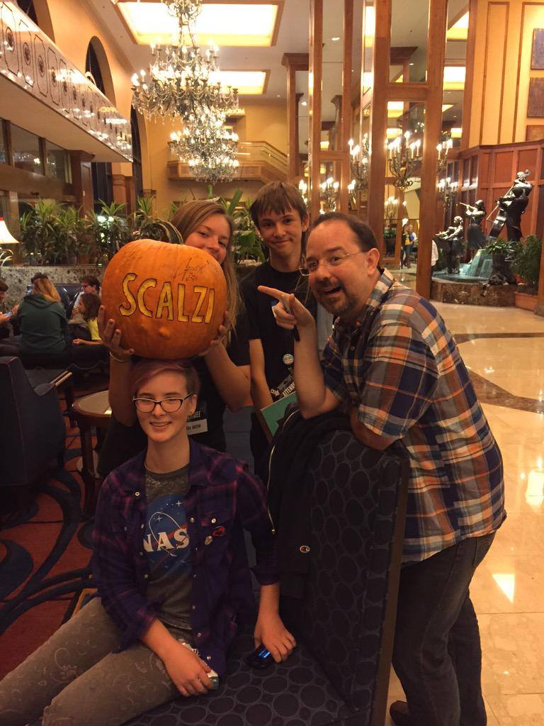 Not to mention a few new podcasts and YouTube channels to follow. I have to say that compiling a book list by listening to authors talk about their work, their enthusiasms, their ethics and their art first – rather than coming because you are already a “fangirl” – is a pretty good way to go. Watching them play games and act in puppet shows together doesn’t hurt either. I liked John Scalzi even better after his death by voodoo pumpkin – and when he responded to a photo I tweeted of two girls I met in the lobby who had collected that pumpkin and wanted him to sign it – well, I liked him even better than better.
